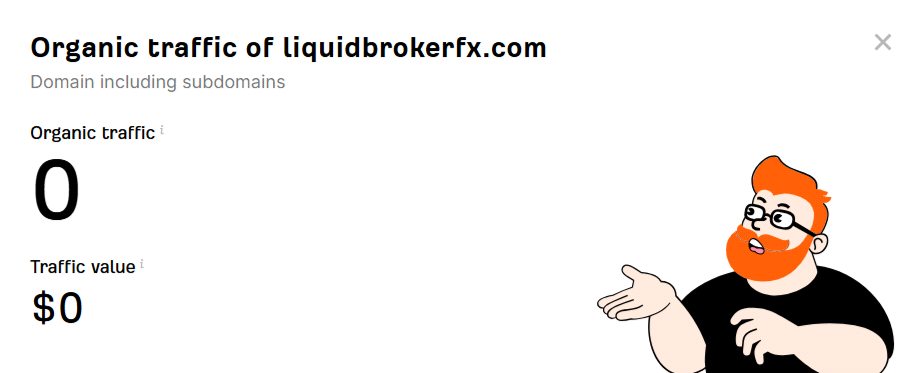 Проверка трафика показывает отсутствие органических посещений домена. Это настолько ленивый развод в исполнении Liquid Broker Fx, что становится очевидно: никакой реальной торговли здесь не ведётся.