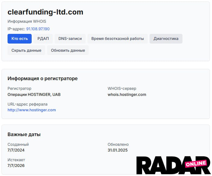 - зарегистрирована только в июне 2024 года в Великобритании, без авторитетной истории ;