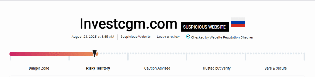Investcgm.com / Capital Global Markets обладает следующими красными флагами: