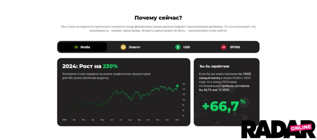 - Пользователю предлагаются «прибыльные инвестиции» с быстрым стартом