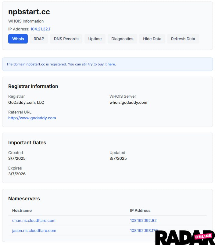 Регистрация домена npbstart.cc датирована 26 июня 2024 года — то есть ресурсу чуть больше месяца. Важно понимать: бренд NPBFX ранее работал на других доменах (включая npbfx.com), которые фигурировали в расследованиях, отзывах и предупреждениях.