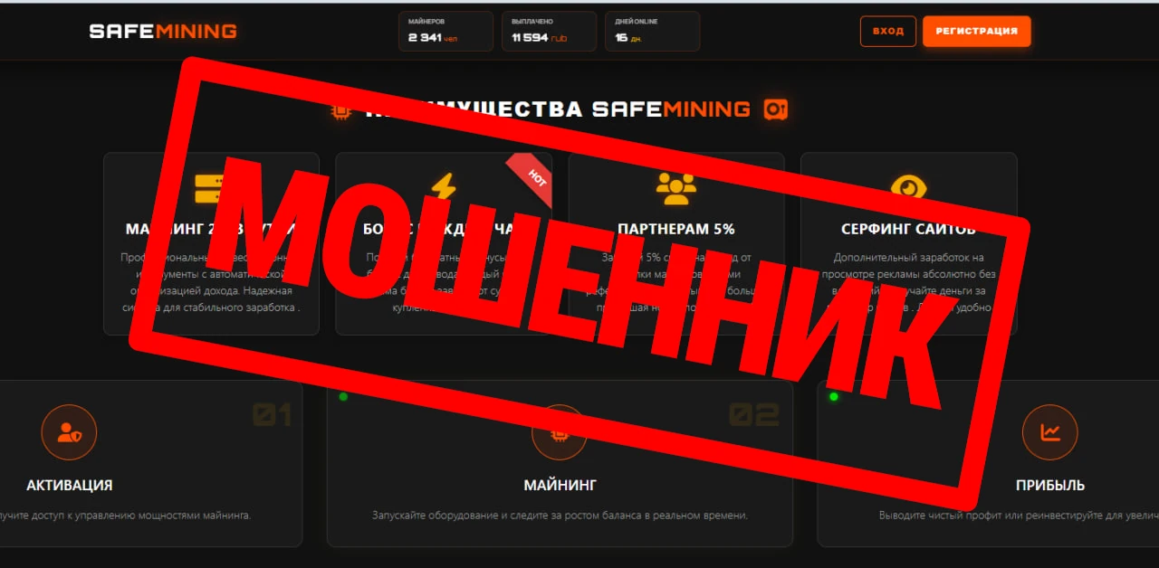 Сервис Safemining.online не демонстрирует признаков реального майнингового проекта и вызывает серьёзные сомнения при проверке.
